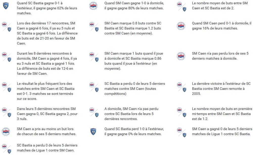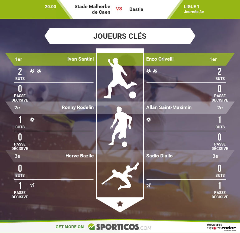 La formation de Patrice Garande compte elle aussi 3 points (victoire contre Lorient et défaite à Lyon). L’entraîneur caennais a pointé du doigt en conférence de presse des soucis défensifs (3 penaltys en deux matchs) et décrit Bastia comme une équipe ayant des qualités techniques, sur les côtés notamment. « Je m’attends à un Bastia qui va mettre en place un système défensif très compact avec du jeu long sur Crivelli ».